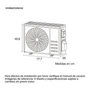 | Dimensiones del producto (cm) | Unidad interior: 77.7 cm (ancho) X 29.0 cm (alto) X 49.8 cm (profunidad) / Unidad exterior: 79.0 cm (ancho) X 27.5 (alto) 19.2 (profundidad) |