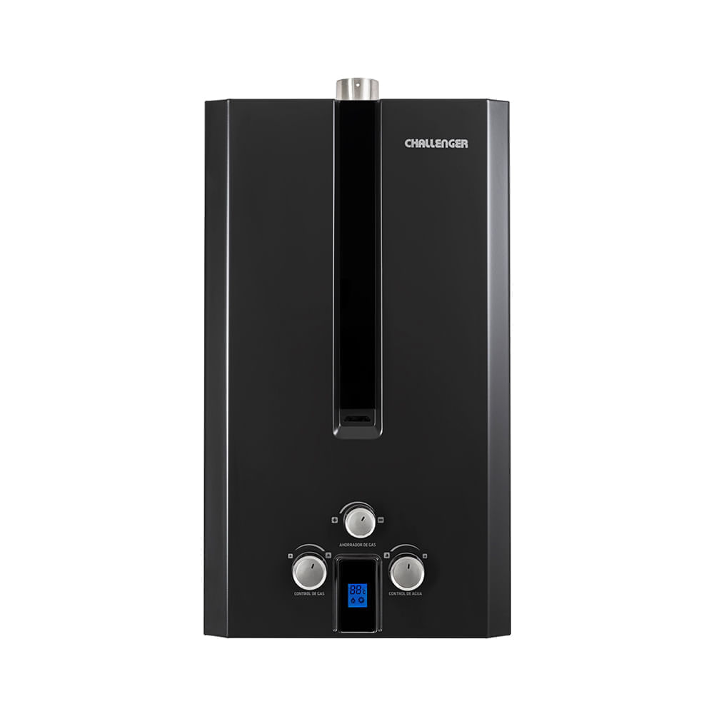 | FeaturesHTML | CalentadorPaso a gas naturalTiro forzado Máxima eficiencia, confort y seguridad en cada gota de aguaEl Calentador CHALLENGER combina eficiencia y seguridad en un diseño moderno y elegante. Con su acabado Titanium en color negro y cristal templado, garantiza un suministro constante de agua caliente. Su visor de llama, sistemas de seguridad para sobrecalentamiento y evacuación de gases, y su pantalla digital facilitan el control de la temperatura y el ahorro de gas, convirtiéndolo en la elección ideal para tu hogar. ¿Cual es el calentador ideal para tu hogar?Tiro naturalFunciona con baterias