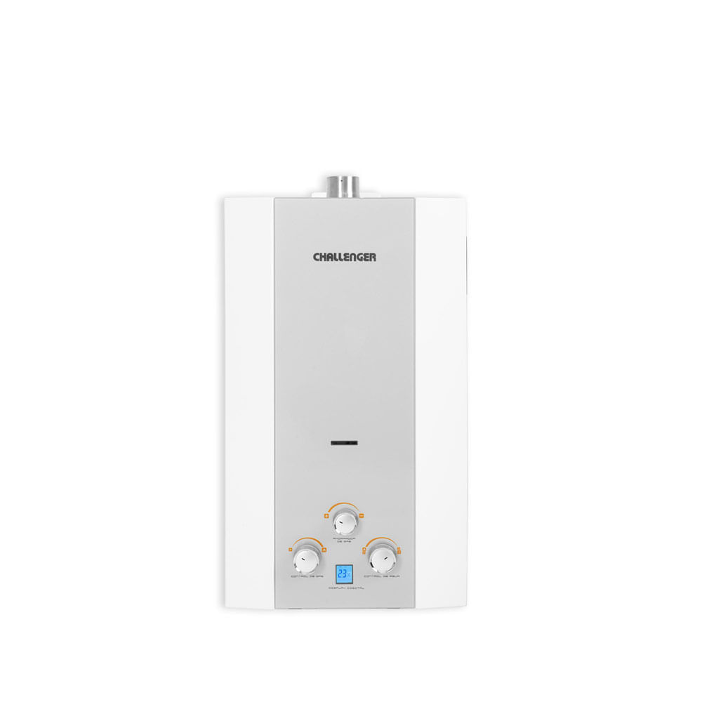 | FeaturesHTML | CalentadorPaso a gas naturalTiro forzado Máxima eficiencia, confort y seguridad en cada gota de aguaEl Calentador CHALLENGER combina eficiencia y seguridad en un diseño moderno y elegante. Con su acabado Titanium y cristal templado, garantiza un suministro constante de agua caliente con solo presionar un botón. Su visor de llama, sistemas de seguridad para sobrecalentamiento y evacuación de gases, y su pantalla digital facilitan el control de la temperatura y el ahorro de gas, convirtiéndolo en la elección ideal para tu hogar. ¿Cual es el calentador ideal para tu hogar?Tiro naturalFunciona con baterias