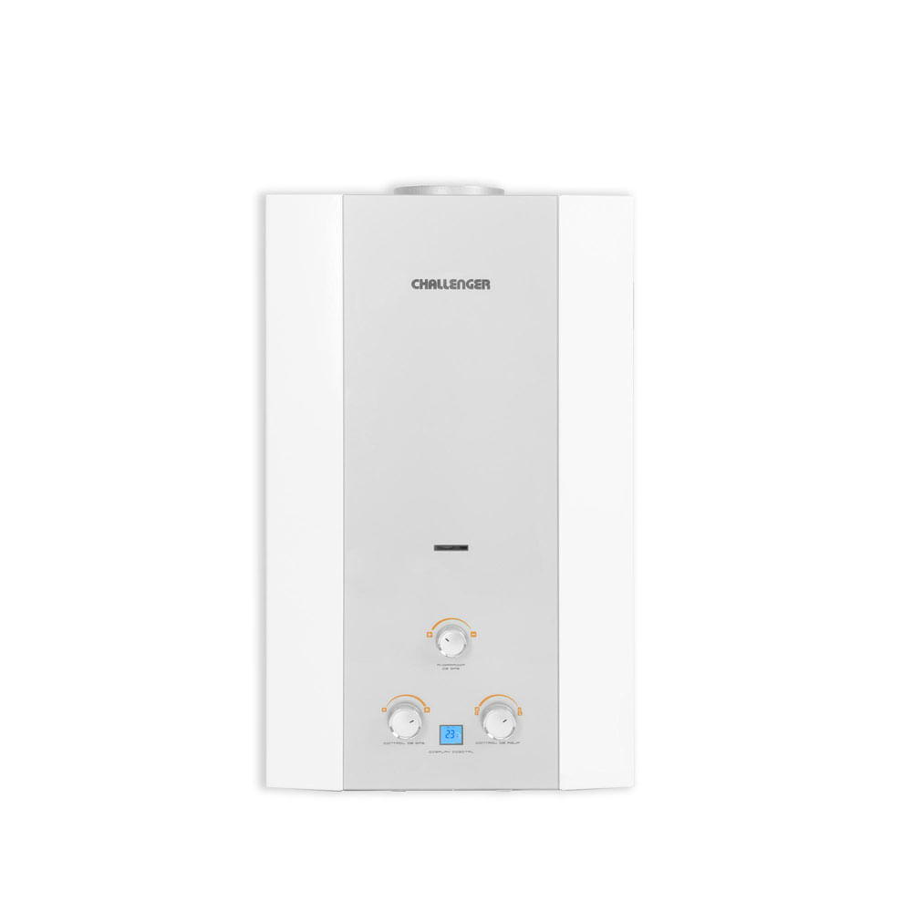 FeaturesHTML | ![]() ![]() CalentadorPaso a gas naturalTiro natural ![]() Máxima eficiencia, confort y seguridad en cada gota de aguaTu calentador CHALLENGER está diseñado para ofrecerte la mejor experiencia en confort y eficiencia energética. Con su elegante frente de cristal templado y display digital, podrás controlar fácilmente la temperatura del agua y monitorear el estado del equipo. Su encendido automático a batería garantiza un funcionamiento sencillo y seguro. Equipado con dispositivos de seguridad avanzada, como el corte de gas en ausencia de llama y la válvula de alivio de sobrepresión, este calentador asegura un hogar seguro y libre de riesgos. Además, su evacuación de humos por tiro natural y su diseño compacto lo hacen perfecto para cualquier hogar con buena ventilación. ![]() ¿Cual es el calentador ideal para tu hogar?Tiro naturalFunciona con baterias