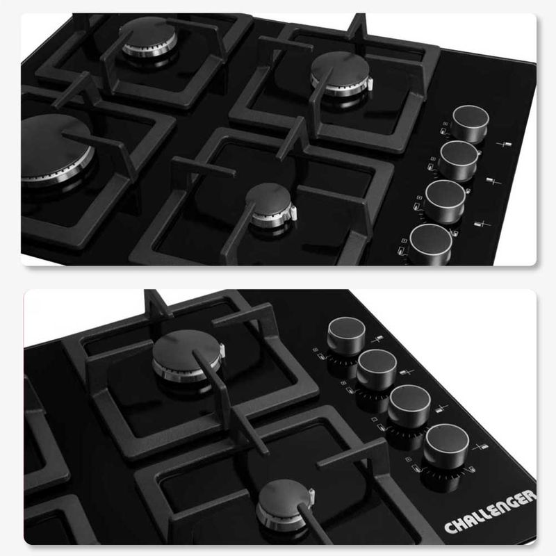 Estufa en vidrio templado de seguridad con bordes redondeados. encendido electrónico incorporado y parrillas en hierro fundido.