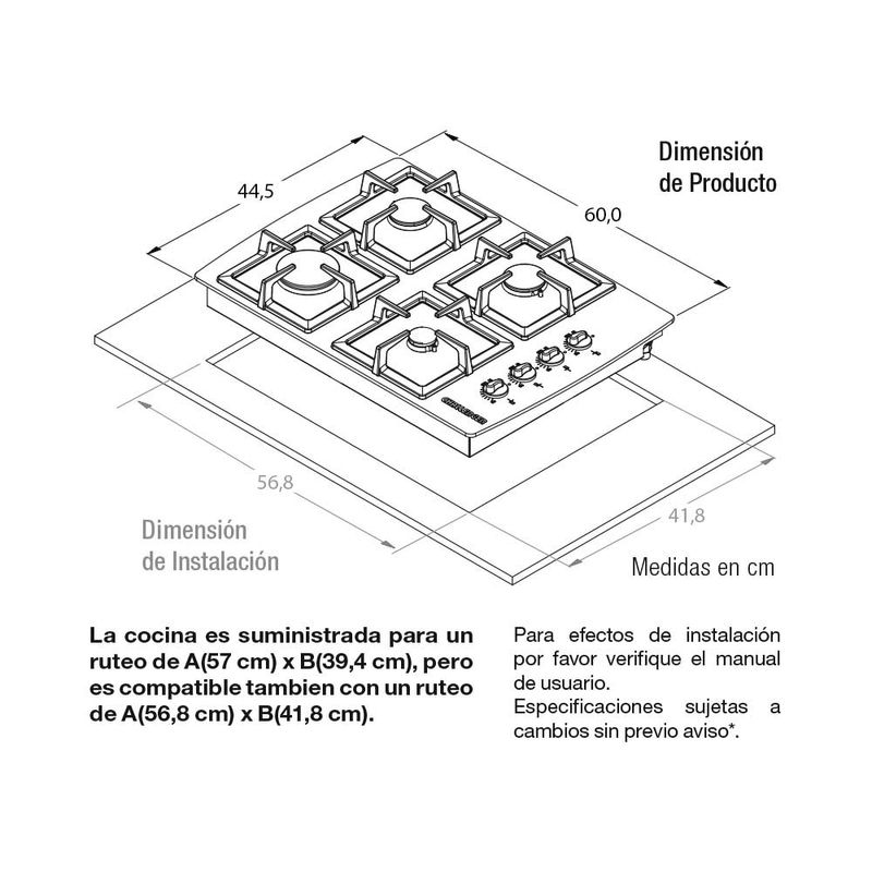 Ancho requerido para la instalación / Ruteo (cm)