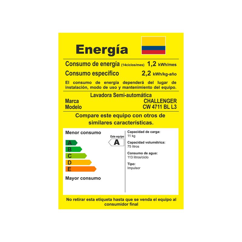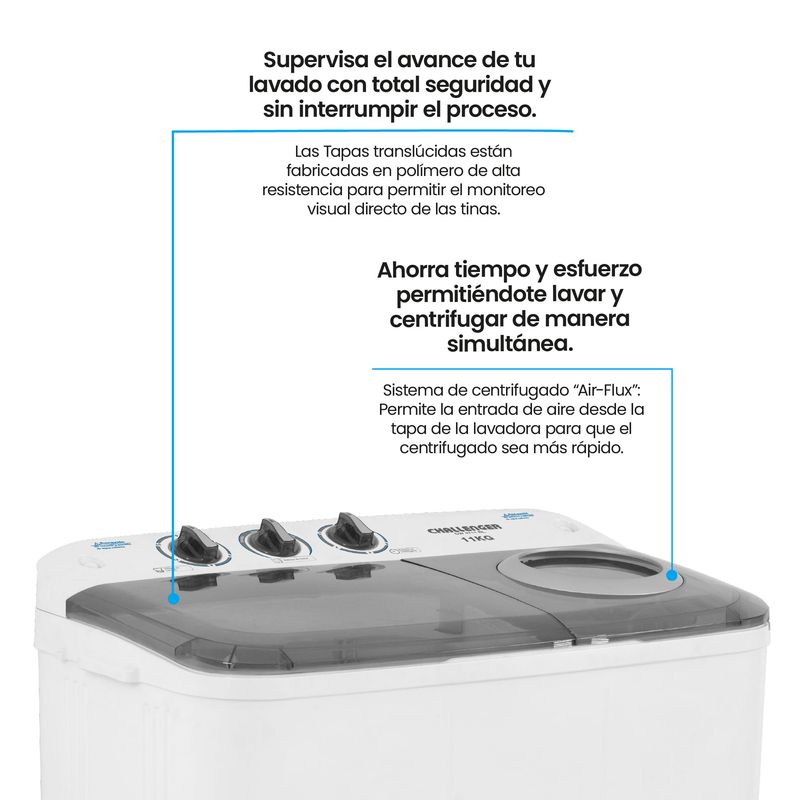 LavadoLavadora Challenger Semiautomática Carga Superior 11 Kg (24lb)